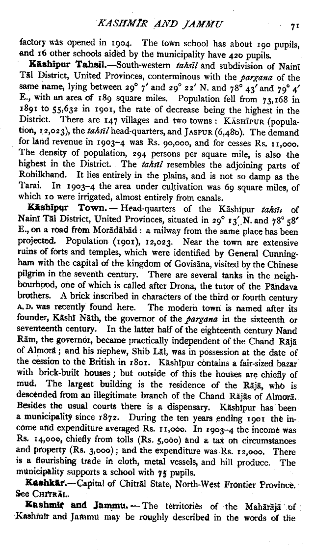 काशीपुर की ऐतिहासिक प्रसिद्धि गोरखपुर में प्रकाशित हिंदी मासिक पत्रिका 'कल्याण' के प्रथम रामायण अंक के लेखक बी. एच. वडेर के "रामकालीन भारतवर्ष" नामक लेख में लिखित महाभारत कालीन उज्जानक व गोविषाण नाम से प्राप्त हुई है।
